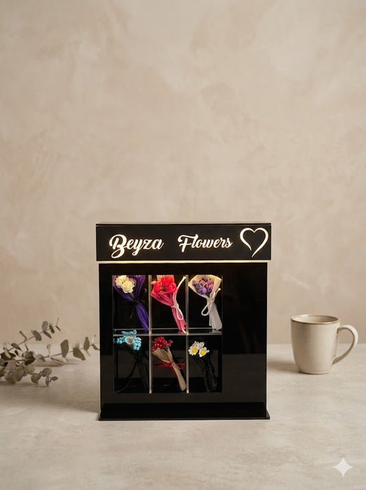 Kişiye Özel LED Işıklı Çiçek Kutusu,Mini Çiçek Standı,Kişiye Özel Işıklı Çiçeklik