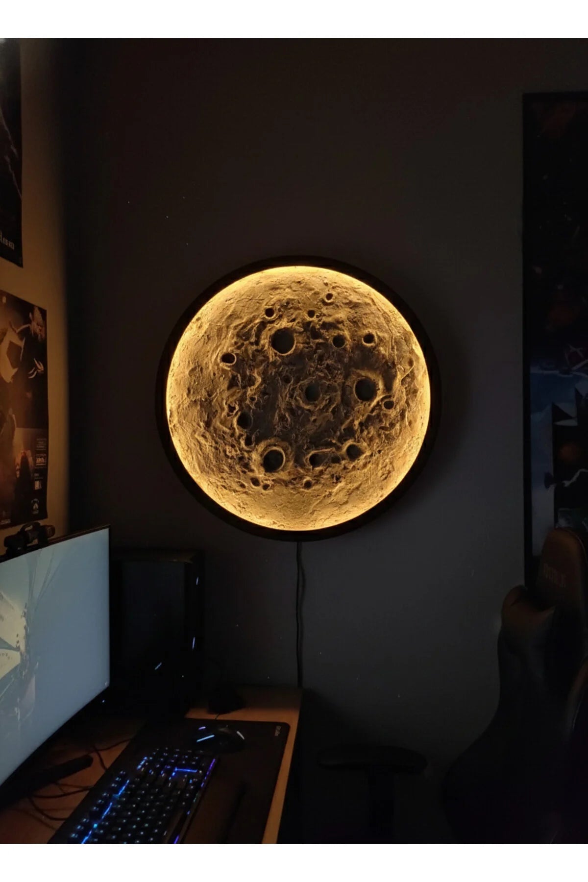 Gökyüzünün en büyüleyici detayı olan Ay, artık evinizde! 3D kabartmalı ay desenli duvar aydınlatması, odanıza zarif ve modern bir atmosfer katarken, dekoratif tasarımıyla göz kamaştırıyor.